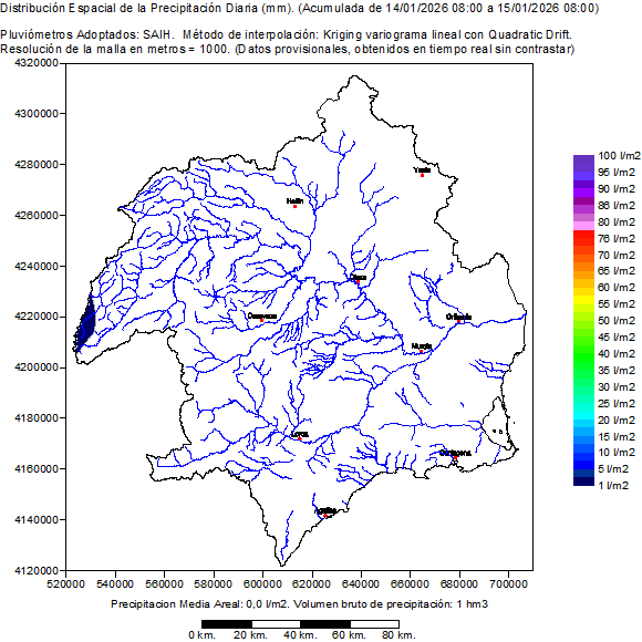 Next you will find some Rainfall Spatial Distribution graphs elaborated from information obtained by the net of sensors of the SAIH system.