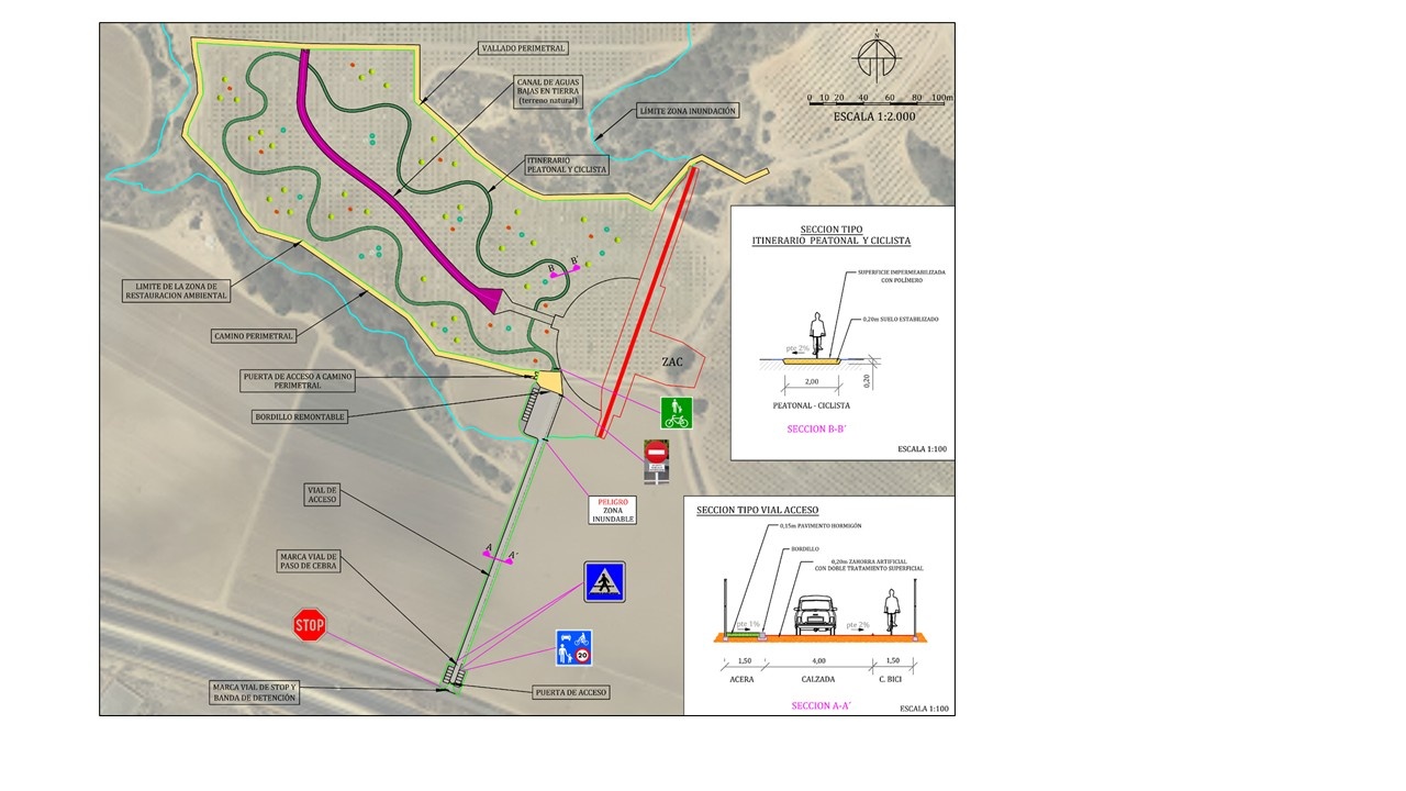 También es objeto del presente proyecto la ejecución y/o adecuación de caminos que permitan un acceso adecuado durante la ejecución de las obras, la ejecución de la señalización y balizamiento de distintos elementos, la reposición de vallados y la restitución de los caminos de acceso a distintos puntos que se verán afectados por la ejecución de las estructuras